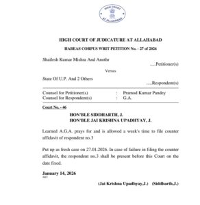 * 27 जनवरी 2026 तक विपक्षी संख्या 3 (थानाध्यक्ष) को अपना जवाबी हलफनामा (Counter Affidavit) हर हाल में दाखिल करना होगा।